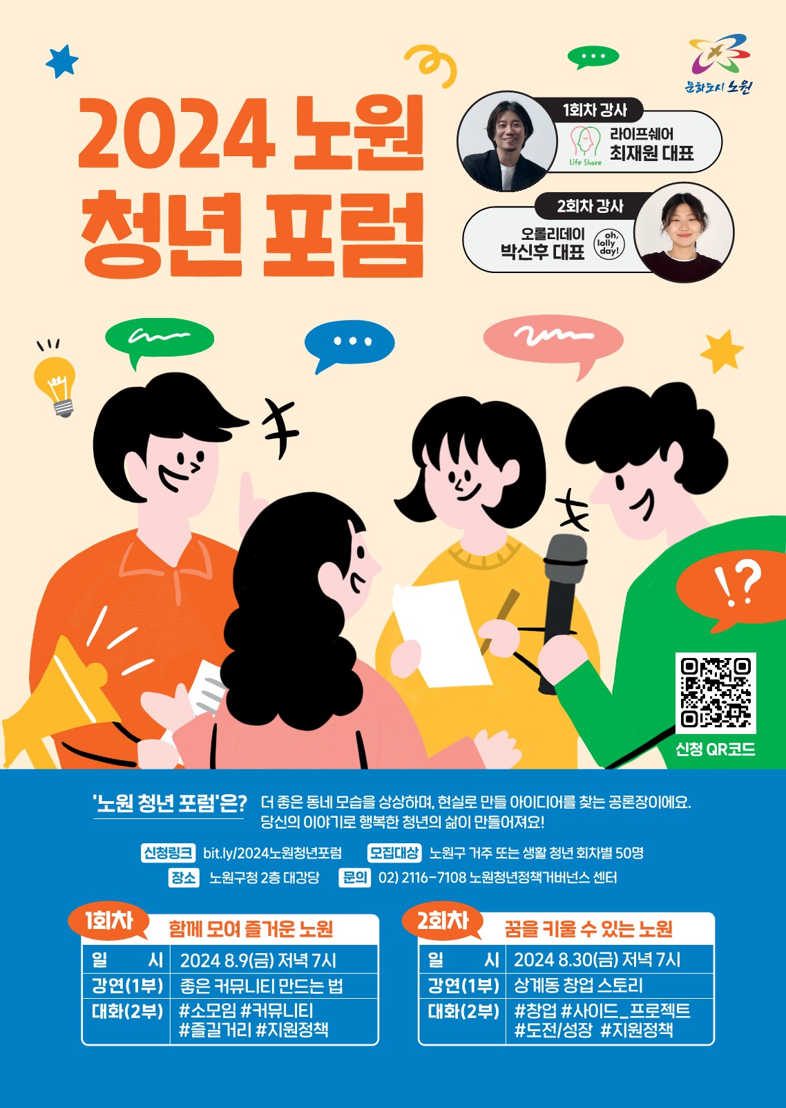 노원구는 정말 다양한 청년센터가 있죠. 취업, 은둔·고립, 1인 가구, 문화, 물품 공유까지 굉장히 다양한 분야를 지원하고 있는데요. 거버넌스 센터는 청년이 주인공이 되도록 돕는 것이 소명이라고 생각합니다. 청년은 독립된 주체이면서 동시에 지원이 필요한 존재이잖아요. 다른 청년센터에서 지원을 해준다면, 저희는 청년이 주체가 될 수 있게 돕는 역할을 보다 많이 해야 한다고 생각해요. 우리 동네가 더 나아지는 이야기에, 청년이 더 멋진 존재로 성장하는 과정에 ‘같이 결정하는 사람’으로 청년이 함께하도록 노력하고 있습니다.