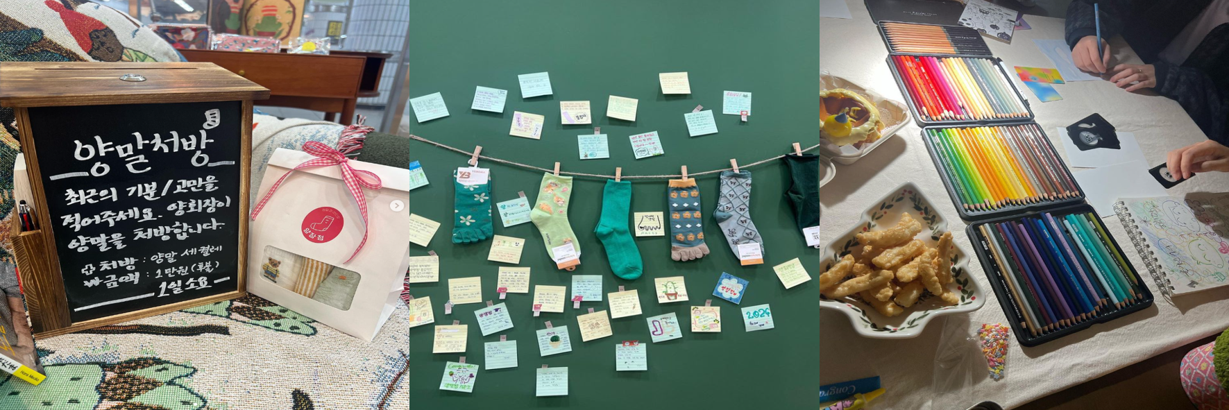 🧵🌵양말과 선인장, 양쟝점 | 하계역에 위치한 양쟝점은 일상을 시작하는 ‘선택’과 일상의 작은 ‘변화’를 응원하고 싶어서 시작한 작은 가게입니다. 오늘의 고민과 기분에 따라 양말을 처방하는 ‘양말처방’과 이름이 있는 선인장을 소개하고 판매하는 작지만 다채로운 가게입니다. 매달 오늘의 기분과 신은 양말 인증샷을 나누는 ‘양쟝클럽’ 모임, 글쓰기 모임, 독서 모임 등을 운영하고 있습니다. 하루를 살아가며 수많은 선택을 하는 우리에게 양말을 통해 감정을 살필 수 있는 시간을 선사하고 있습니다. 🙆♀️🙆♂️ |