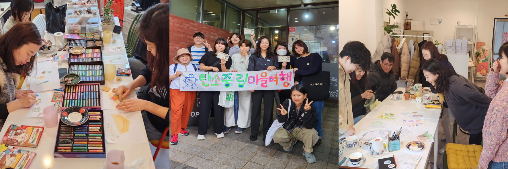 🥰🎨따숲with이대리 | 공릉역 4번 출구에서 나와 4분 남짓 걸으면 나오는 2층에 위치한 작지만 따뜻한 공간 ‘문화기획 따숲’. 존재의 의미를 찾았던 10대를 지나 ‘사람을 사랑하는 사람’이라 소개할 수 있는 성인이 된 지금, 따숲 공간에서 문화를 매개로 청년과 청년을 이어주고 있습니다. 잘하고 못 하고의 기준이 아닌 ‘나’를 기준으로 사람과 사물, 풍경을 그리는 드로잉 모임부터 독서모임, 네트워킹 파티까지 다양한 모임을 운영하고 있습니다. 노원 청년 누구나 이곳에 방문하신다면, 이 공간을 사랑하지 않을 수 없을 겁니다.💕✨ |