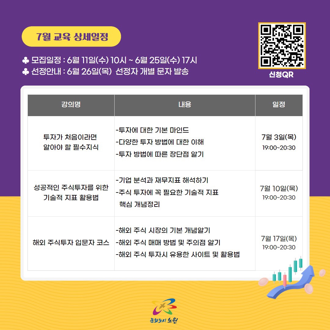 노원구에 거주하거나 활동하는 19세~39세 청년이라면 누구나 신청 가능합니다. 활동하는 청년은 노원구에 위치한 대학교 재학생(휴학생 포함), 노원구에 주소지를 둔 직장인, 노원구에서 사업을 하고 계신 사업자에요. 게다가 수강료는 0원, 완전 무료에요. 필요한 건, 금융에 대한 지적 호기심과 열정만 가지고 오세요. 나머지는 다 프로그램을 수강하시며 채워가시면 됩니다.🥩💎 |