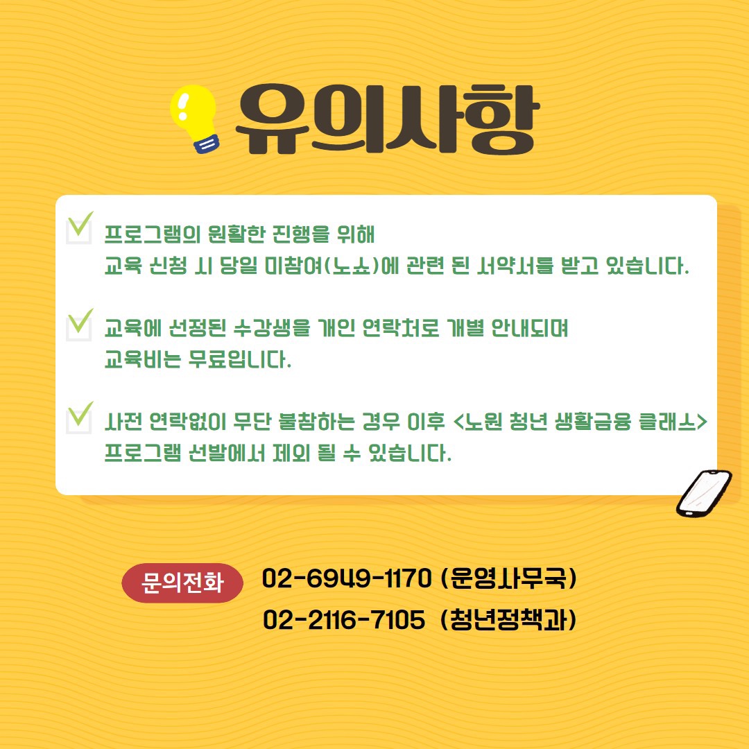 2025 노원청년 생활금융 클래스 ‘청년 금융 워크숍’은 청년의 생각으로 기획된 교육이에요. 노원청년정책네트워크 5기 위원들이 제안한 정책 아이디어로 만들어졌다는 거, 아셨나요? 우리에게 진짜 필요한 걸 고민해서 나온 교육이니까, 더 믿음이 가고 의미도 크죠. 노원구는 앞으로도 청년들을 위해 채무관리, 경제특강, 맞춤형 상담 등 다양한 금융교육을 계속 펼칠 예정이에요. ‘어차피 돈은 어렵다’고 피하지 말고, 이번 기회에 제대로 한번 배워보는 건 어떨까요?